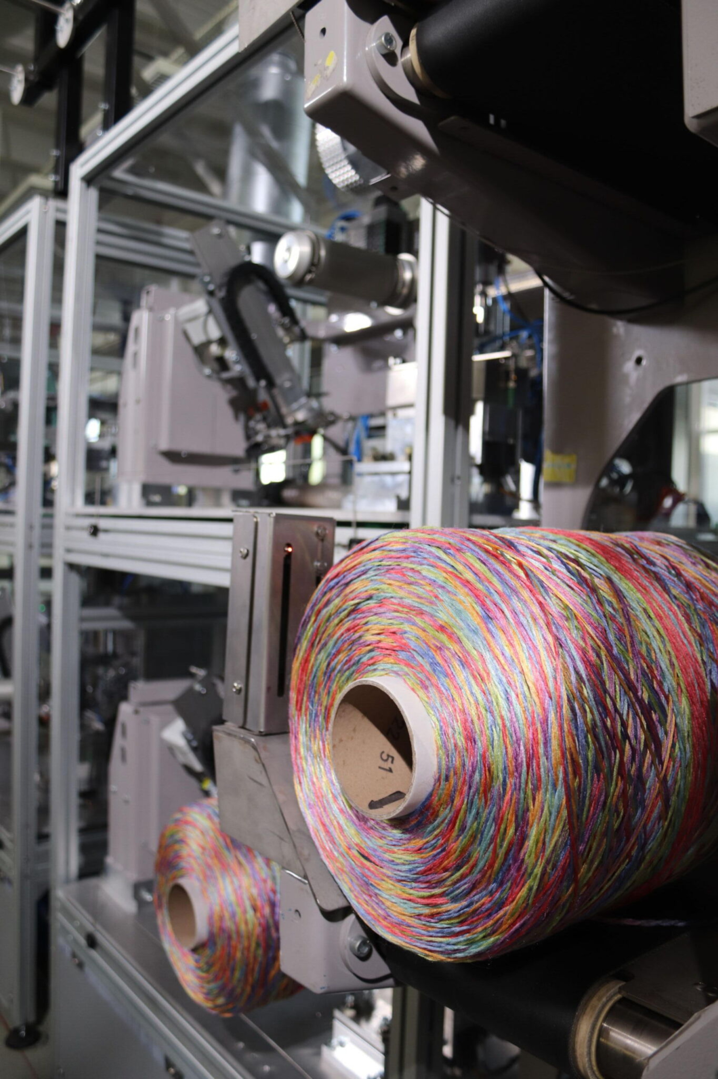 KR1 automates bobbin knotting for all yarn types, from fine to technical fibers. It handles up to 240 bobbins per hour, reducing manual work and increasing productivity.